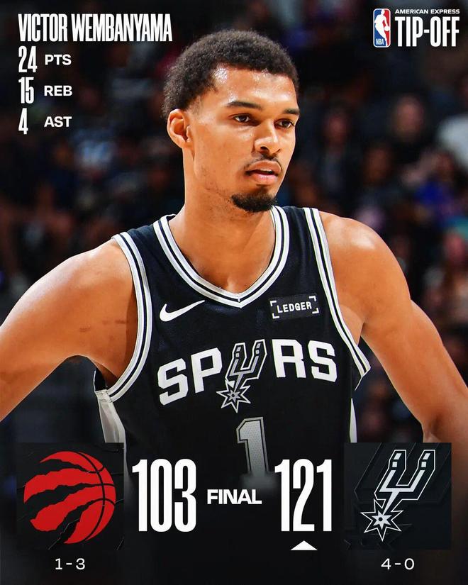 文班24+15 马刺轻取猛龙开季四连胜